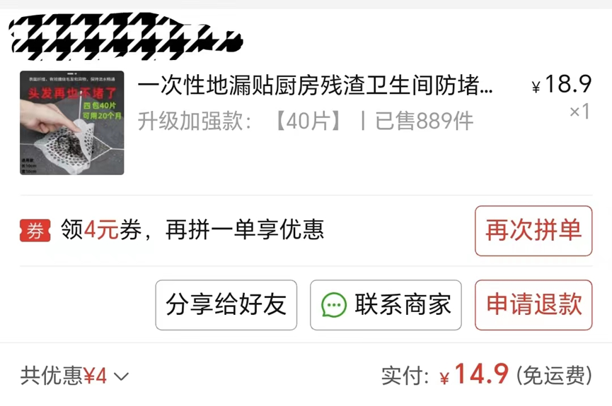 我開玩笑說她很有做主播帶貨的天賦,她似乎得到了鼓舞,隨即又給我發(fā)來三張商品截圖,分別是食物保鮮“頭套”、浴室刮水神器和廚房臺(tái)面碗柜。