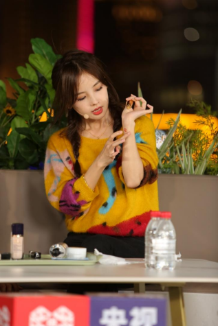 直播間內(nèi),王冰冰現(xiàn)場(chǎng)試色,分享口紅購(gòu)買技巧。唐超 | 攝