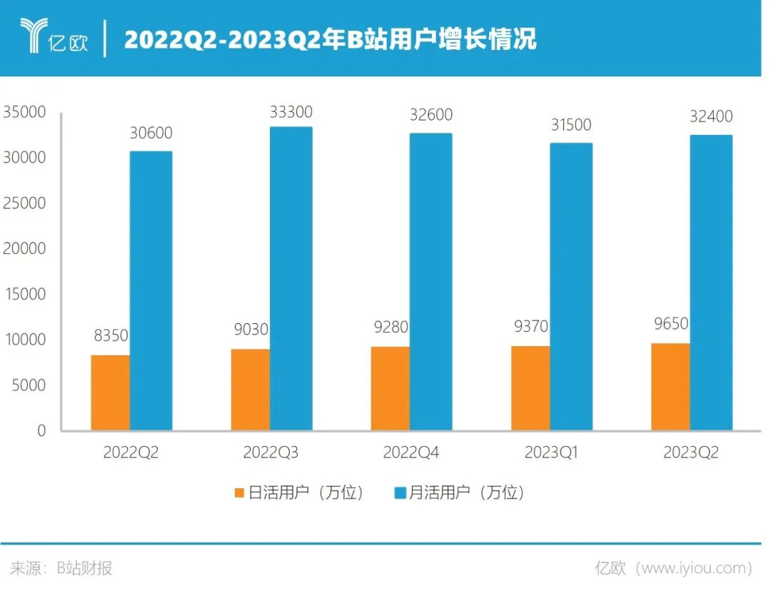 財(cái)報(bào)顯示,2023年第二季度,B站日活用戶為9650萬,月活用戶為3.24億,分別同比增長了15%和6%。在今年年中的一次內(nèi)部會(huì)議上,陳睿還指出 “B站仍有用戶增長勢能”,也 “必須做好用戶增長”,并提出了主站移動(dòng)端日活用戶翻一倍的目標(biāo)。