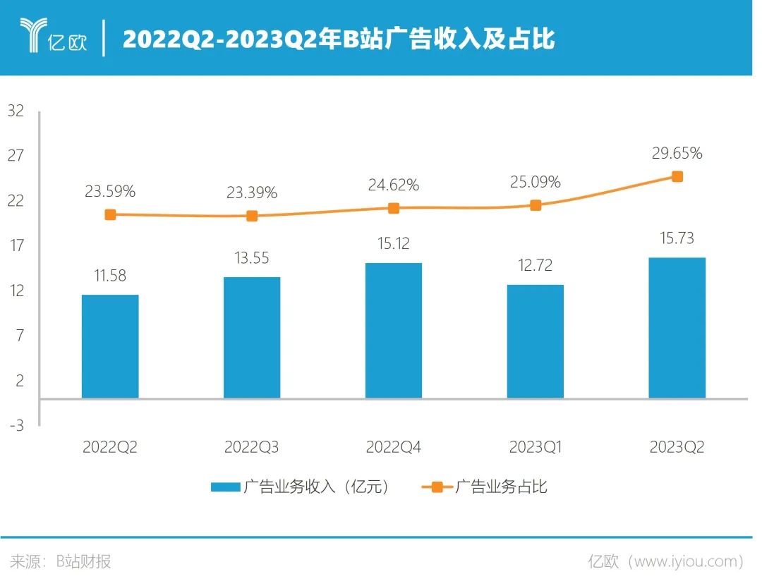 財(cái)報(bào)顯示,過去一年廣告業(yè)務(wù)表現(xiàn)最佳,2023年第二季度營收15.73億元,同比增長36%,增速跑贏大盤;廣告業(yè)務(wù)對總營收的貢獻(xiàn)占比,也從2022年第二季度的23.59%飆升到了2023年第二季度的29.65%。