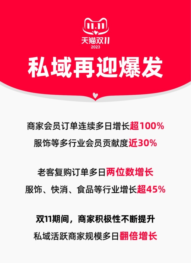 業(yè)內(nèi)人士普遍認為,包括會員粉絲老客在內(nèi)的私域人群運營,已經(jīng)成為今年雙11期間商家的重要增長紅利。在天貓雙11商家大會上,淘天集團首席執(zhí)行官戴珊表示,淘寶天貓擁有全中國規(guī)模最大的高質(zhì)量消費用戶,淘寶天貓“不僅會致力于引入更多的用戶,還會留存他們,更會把這些用戶資產(chǎn)從公域引入每個商家的私域”,讓商家生意保持長線增長。