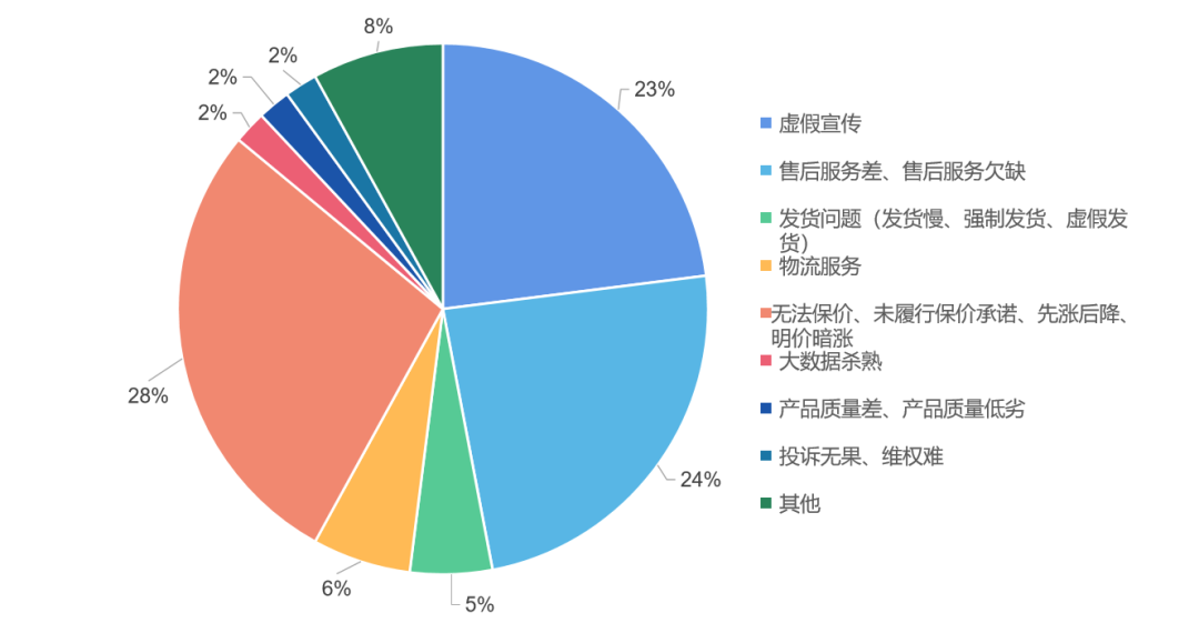 最終統(tǒng)計(jì)的結(jié)果顯示,消費(fèi)者反映最多的問題就是商品無法保價(jià)、未履行保價(jià)承諾、先漲后降、明價(jià)暗漲等,占比高達(dá)28%。