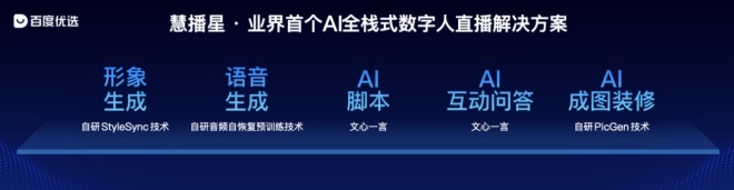 雙十一期間,白小T、Ttouchme等諸多國貨品牌依靠“慧播星”平臺提供的數(shù)字人,在百度優(yōu)選24小時直播,GMV提升高達(dá)60%,帶貨效率提升達(dá)120%;眾多中小商家利用“慧播星”,實(shí)現(xiàn)零成本一鍵開播。隨著生成式AI能力與電商行業(yè)的深度融合正在進(jìn)行,“慧播星”為代表的智能電商產(chǎn)品,正在用AI為商家生產(chǎn)效率帶來顛覆性改造。