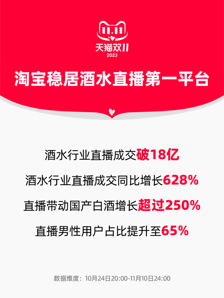 淘寶穩(wěn)居酒水直播第一平臺,天貓雙11酒水直播增長628%