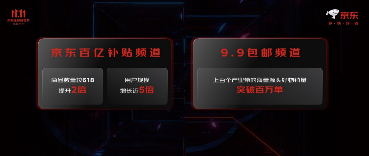 在10月31日晚8點開啟的京東11.11百億補貼日,開賣不到4分鐘,頻道成交額即破億;在11月2日啟動的“9.9包郵日”,京東9.9包郵頻道全天訂單量較今年京東618當(dāng)天增長超35倍,購物用戶數(shù)提升超28倍。