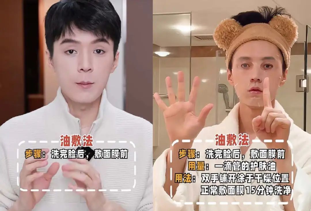 抖音頭部美妝駱王宇宣傳的油敷法打破傳統(tǒng)干皮護(hù)膚的邏輯,在補(bǔ)水的基礎(chǔ)上又加了一個補(bǔ)油。因此,敷面膜不再是簡單的一層膜,還得再買一瓶精油,“只要你皮膚干,一定要試試我這個以油養(yǎng)膚法”。