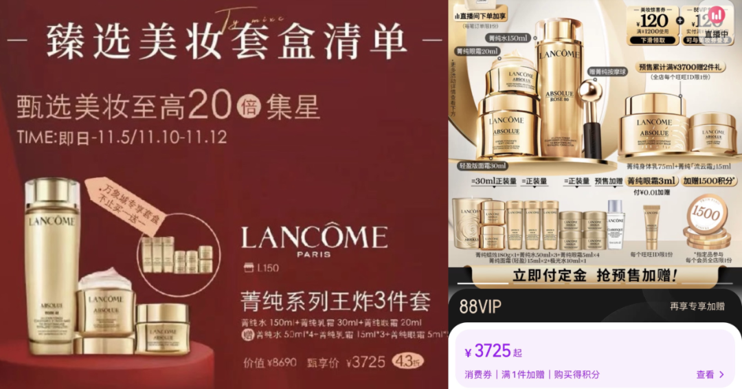美妝護膚一直是大促期間的重點品類。而在今年雙11的活動中,美妝護膚品類專柜的折扣力度甚至要比電商平臺還要大。