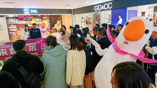 以“來(lái)新百當(dāng)幸運(yùn)鵝”為主題進(jìn)行全館包裝,以萌萌大鵝為宣傳點(diǎn),重設(shè)計(jì)、輕成本,統(tǒng)一視覺設(shè)計(jì),設(shè)置美陳打卡點(diǎn)及創(chuàng)意地貼;提升體驗(yàn)性、趣味性、互動(dòng)性,配合特色的套鵝游戲互動(dòng),點(diǎn)燃現(xiàn)場(chǎng)人氣!以重點(diǎn)品類帶動(dòng)全局,品類優(yōu)化組合,豐富晚間活動(dòng),打造年輕潮流新地標(biāo)及夜經(jīng)濟(jì)消費(fèi)亮點(diǎn);會(huì)員活動(dòng)上,針對(duì)新老會(huì)員開展不同力度的促銷活動(dòng),強(qiáng)化年輕會(huì)員的觸達(dá);開展抖音直播活動(dòng),吸客引流,帶動(dòng)線上、線下人氣飆升。同時(shí)準(zhǔn)備了5500份大鵝玩偶用作創(chuàng)意贈(zèng)禮,全方位為顧客打造誠(chéng)意十足且富有創(chuàng)意的 “新百雙11”,讓顧客盡情嗨購(gòu),共同感受城市商業(yè)的時(shí)尚脈動(dòng)。