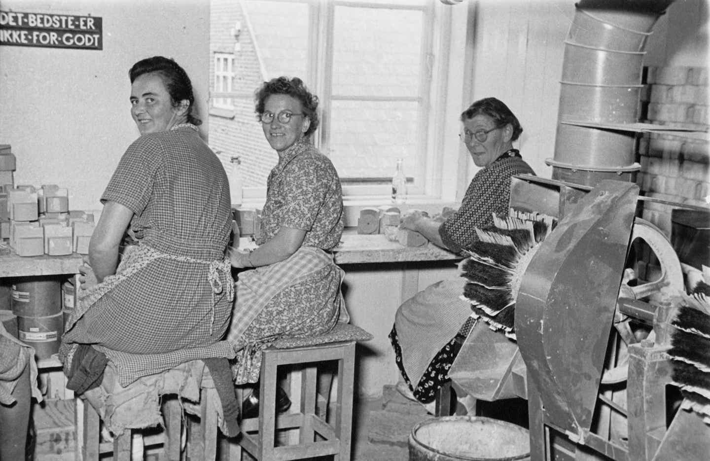 1954年,樂高木工作坊圖,墻壁上掛著公司的座右銘。圖源:LEGO