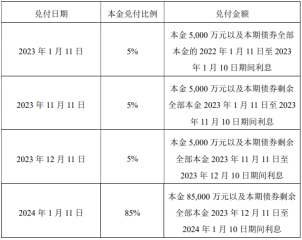 寬限期內(nèi)不設(shè)罰息,按照本期債券票面利率繼續(xù)支付利息。本期債券剩余全部本金2023年1月11日至2023年11月10日期間利息兌付日期不變,仍為2023年11月11日;本期債券剩余全部本金2023年11月11日至2023年12月10日期間利息兌付日期不變,仍為2023年12月11日。