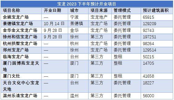 寶龍商業(yè)2023年上半年新拓展情況,數(shù)據(jù)來(lái)源:企業(yè)半年報(bào)