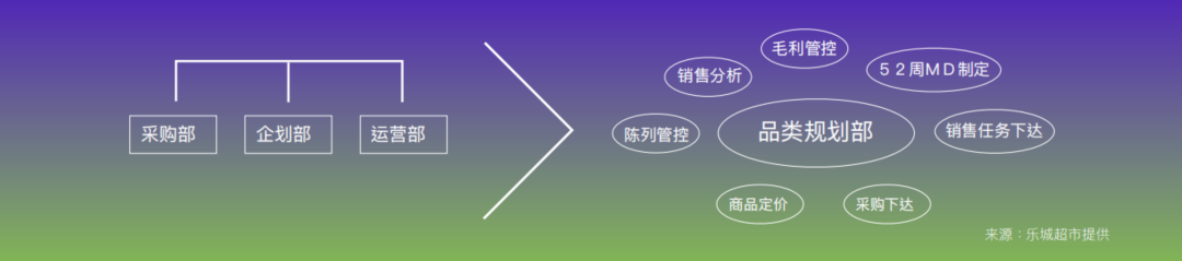 例如:在強(qiáng)化商品力與門店場景結(jié)合上,我們熟知的安徽樂城超市,引進(jìn)了52周MD技術(shù)。在引進(jìn)初期,由于原有組織結(jié)構(gòu)分工的不匹配,面臨很大困難。在公司一把手的推動下,成立了一個新的部門——品類規(guī)劃部,專門負(fù)責(zé)52周MD的實(shí)施和落地。這個部門高度集合了毛利管控、52周MD制定、銷售任務(wù)下達(dá)、商品采購下達(dá)、商品定價、陳列管控、銷售分析等職能。從而,52周MD工作,得以全面推動。