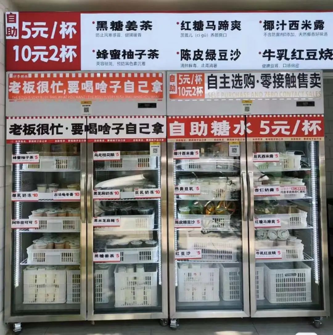 大街小巷,仿佛一夜間就被塞滿了幾平米或十幾平米的無人自助糖水店。