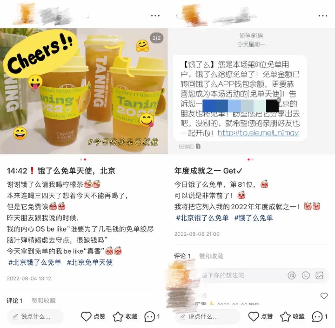 耐不住身邊的同事反復安利,2022年夏天的一個中午,艾可嘗試性地參與了“城市免單專場”的活動,并獲得了餓了么“請客”的三杯檸檬茶。到現(xiàn)在,不知不覺,艾可已經習慣了點外賣的時候,打開餓了么。