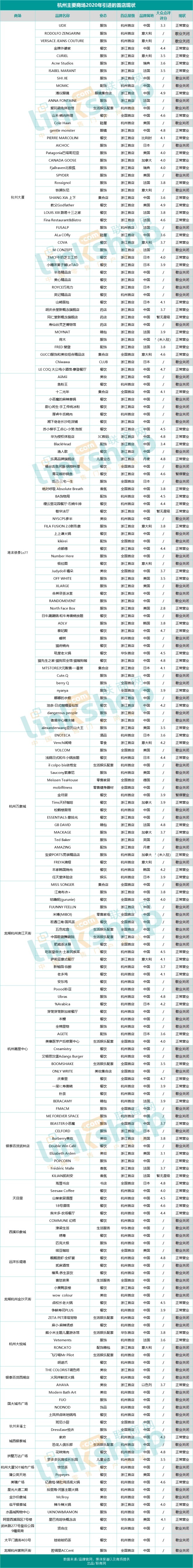 附:杭州主要商場2020年引進的首店現(xiàn)狀