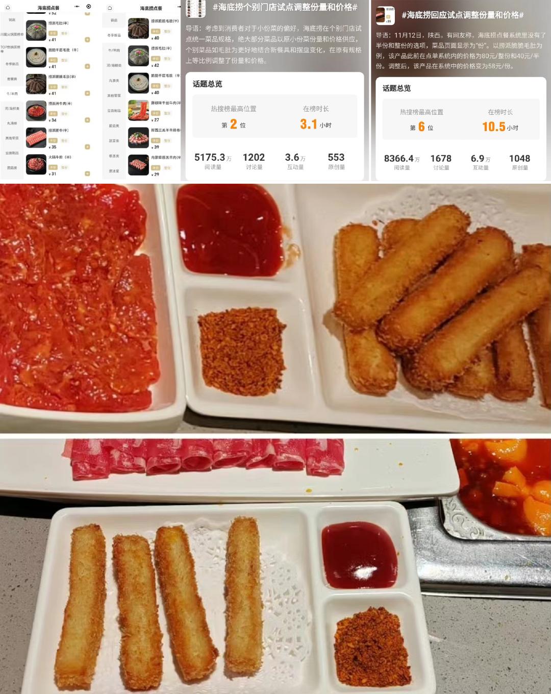 緊接著,海底撈官方也下場回應(yīng),表示:“半份菜并沒有取消,考慮到消費(fèi)者對小份菜的偏好,海底撈在個別門店試點(diǎn),以原本半份菜的份量和價格來統(tǒng)一菜品規(guī)供應(yīng)規(guī)格。”