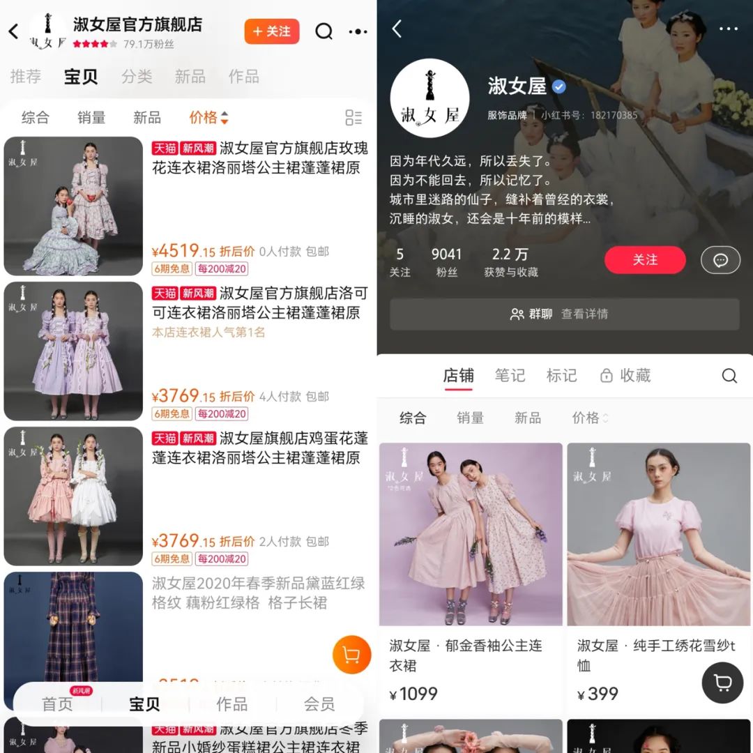 左為淑女屋天貓旗艦店,右為淑女屋小紅書店鋪