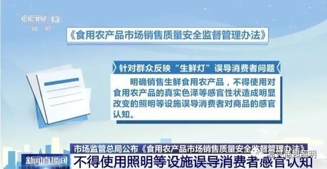 《辦法》第七條提出:銷售生鮮食用農(nóng)產(chǎn)品,不得使用對(duì)食用農(nóng)產(chǎn)品的真實(shí)色澤等感官性狀造成明顯改變的照明等設(shè)施誤導(dǎo)消費(fèi)者對(duì)商品的感官認(rèn)知。