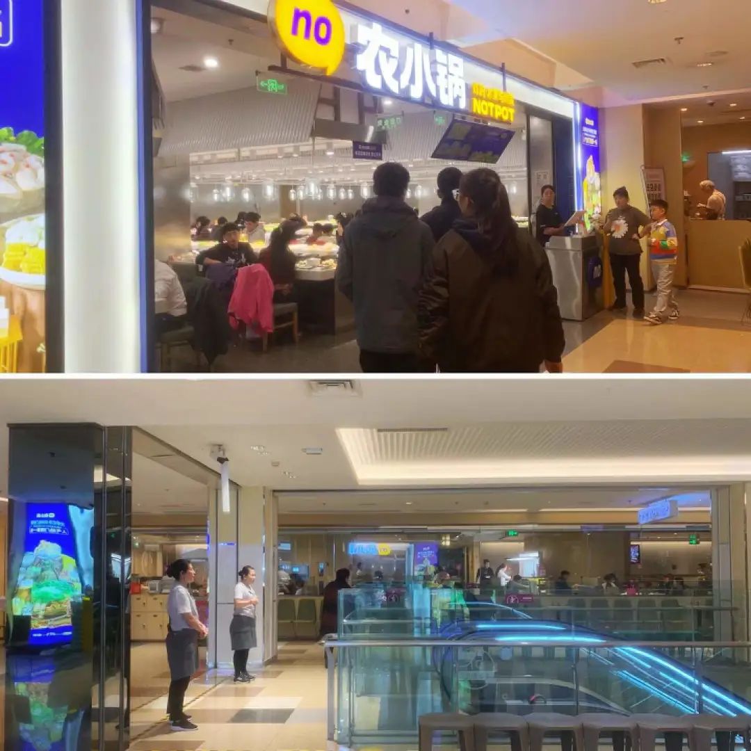 在北京順義華聯(lián)商場,農(nóng)小鍋門店選址在五層,緊貼海底撈。不同的是,農(nóng)小鍋店門口只有一位服務(wù)員負(fù)責(zé)結(jié)賬,而反觀海底撈門口依舊是往日隆重迎賓的景象,更顯大氣。