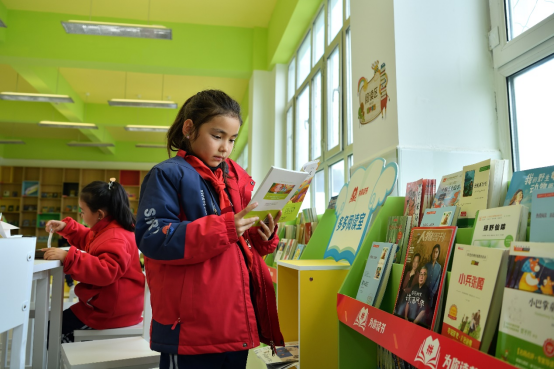 ▲ 近期,拼多多向新疆阿勒泰地區(qū)吉木乃縣直小學(xué)贈(zèng)送9200余冊(cè)圖書。陳逸航▕攝