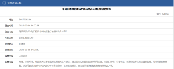 盡管中國(guó)海關(guān)總署也在官網(wǎng)回復(fù)網(wǎng)友,稱(chēng)會(huì)通過(guò)固定式核福射監(jiān)測(cè)系統(tǒng)等設(shè)備,對(duì)進(jìn)口貨物、行李物品、郵遞物品等實(shí)施核福監(jiān)測(cè)。同時(shí)會(huì)根據(jù)貨物屬性、來(lái)源等因素開(kāi)展針對(duì)性風(fēng)險(xiǎn)分析與布控查驗(yàn)、實(shí)驗(yàn)室檢測(cè)等。