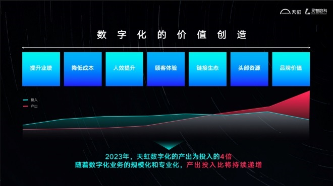 每個(gè)人都應(yīng)該衡量數(shù)字化到底幫公司帶來什么價(jià)值,天虹目前的產(chǎn)出已經(jīng)是投入的4倍。