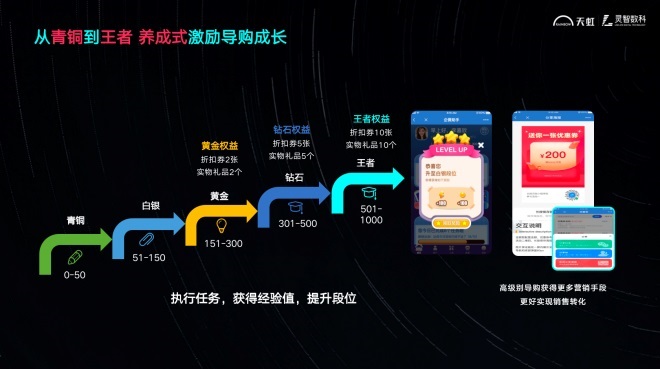 第二給導(dǎo)購做激勵(lì)。能不能跟打游戲一樣可以進(jìn)階升級,比如說從青銅到王者,不同的級別擁有的權(quán)利是不一樣的,我們給導(dǎo)購設(shè)計(jì)這樣的權(quán)利。比如說你是青銅,你的底薪提成跟王者就不一樣,你可能是2000塊錢底薪1個(gè)點(diǎn),王者可能就是3000塊錢底薪2個(gè)點(diǎn),同時(shí)給到顧客的權(quán)益也不一樣的。當(dāng)你是青銅的時(shí)候,一個(gè)月只有10次給你的高價(jià)值顧客做比如八折新品體驗(yàn)券,或者什么樣的優(yōu)惠活動(dòng),跟新品體驗(yàn)的活動(dòng)。如果你是王者,一個(gè)月可能有30次,做的越好的人進(jìn)階就越好,收入也越高,他就愿意積極主動(dòng)去做這個(gè)事情,所以我們說激勵(lì)體系也得跟上,才能夠真正滾動(dòng)起來。