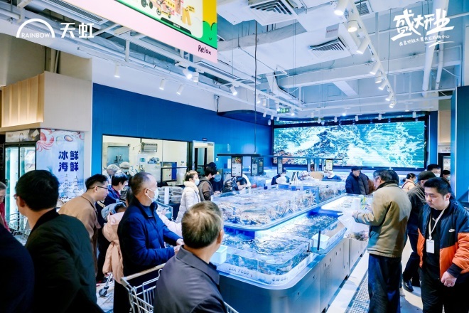 海鮮水產(chǎn)區(qū)集鱈魚、鰻魚、帝王蟹、波龍、三文魚系列等商品,種類豐富達(dá)160 余種,讓人們在鮮美滋味中盡興。天虹自有品牌及國際直采商品極致性價(jià)比,滿足人們多元化需求。