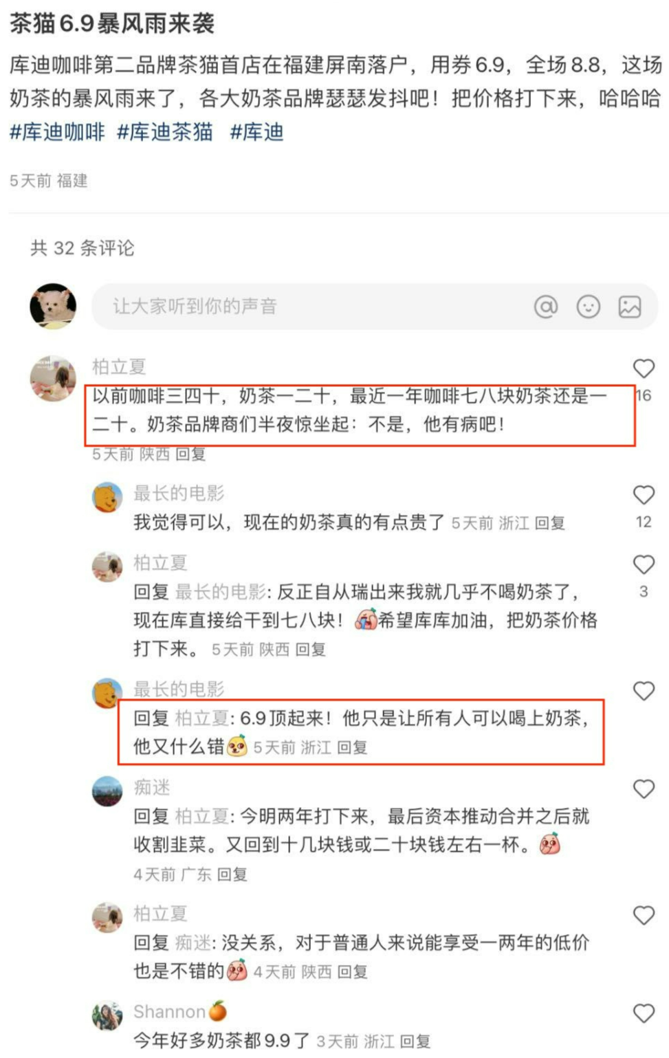 此外,茶貓首店裝修風(fēng)格簡(jiǎn)約,便于庫(kù)迪聯(lián)營(yíng)商低成本入場(chǎng)。但庫(kù)迪近期加盟增速放緩、后入資金不斷變少,以及部分聯(lián)營(yíng)商“逃離庫(kù)迪”的現(xiàn)象不容忽視。