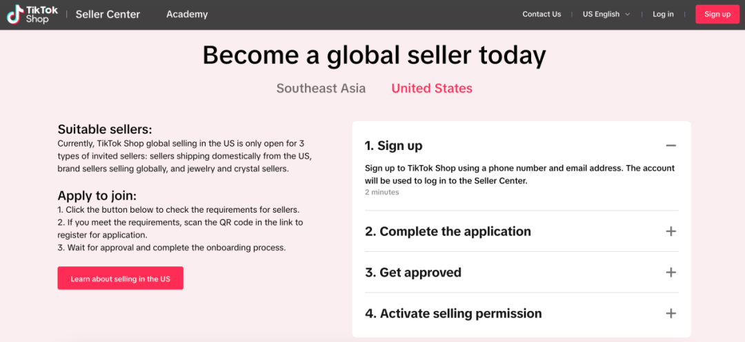 TikTok Shop招商網(wǎng)站,主推東南亞與美國地區(qū) 圖源:TikTok Shop官網(wǎng)