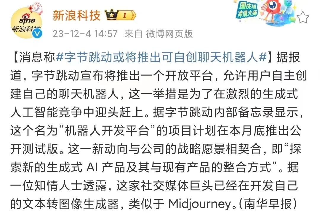 消息稱抖音將推出機器人開放平臺