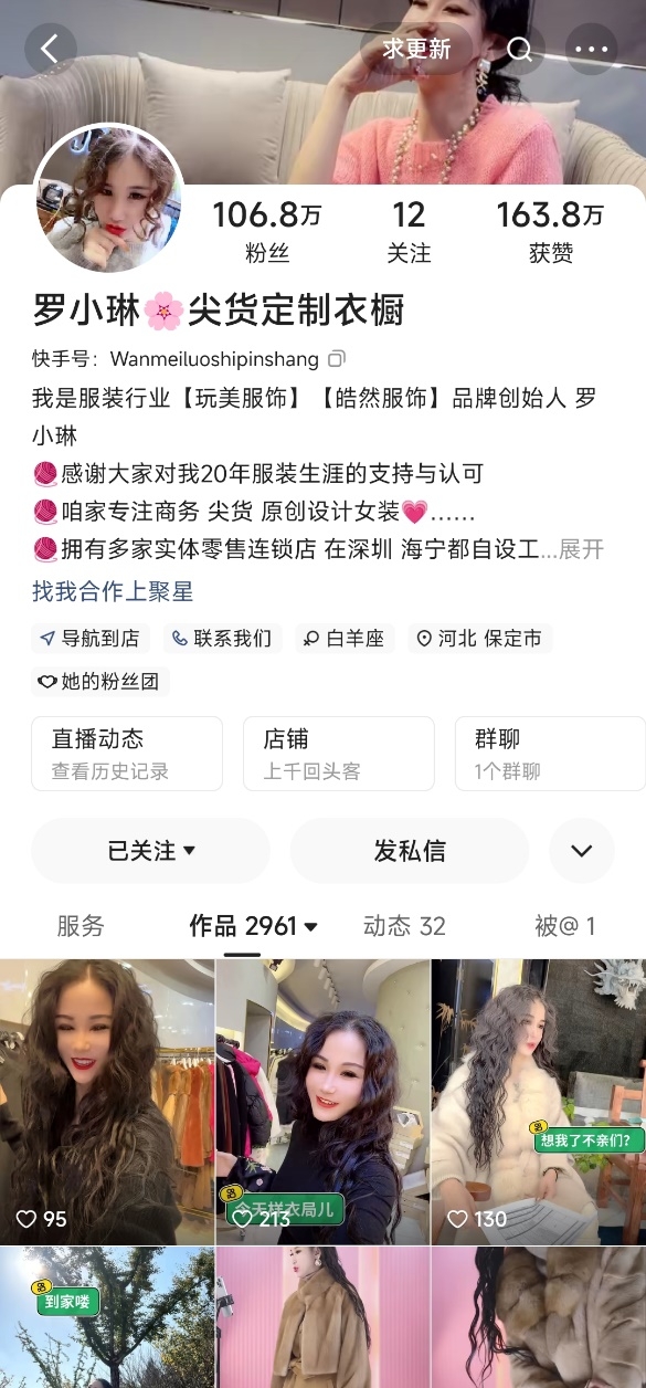 深耕女裝行業(yè)近20年,羅小琳從實體店主做到品牌主理人,并在濮院羊毛衫源頭產(chǎn)業(yè)帶建立起工廠,打通了女裝從設(shè)計、生產(chǎn)到銷售的全鏈流程。在羅小琳的生意擴張之路上,快手成為她從河北來到濮院再走向全國的重要助推器。