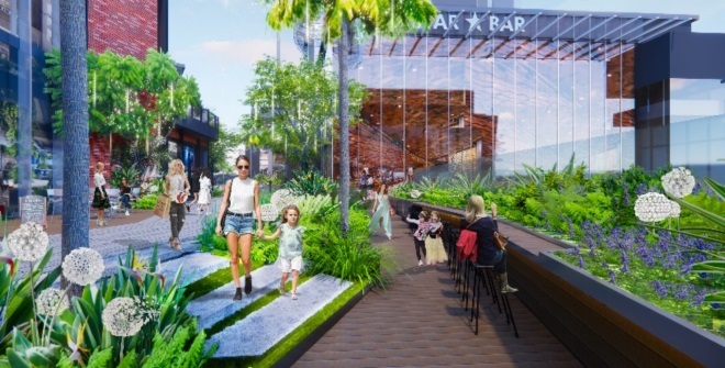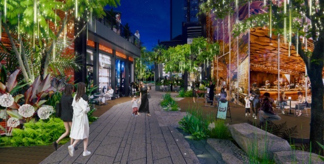 深圳大悅城在面積達(dá)4000㎡的屋頂室外空間,營造別具匠心的花境與綠植景觀,結(jié)合錯落蜿蜒的疊澗、溪谷、林泉的園林設(shè)計(jì),串聯(lián)兩大觀景平臺,打造城市首個充滿熱帶叢林意境的空中生態(tài)公園。項(xiàng)目在屋頂別出心裁打造十余個復(fù)式獨(dú)棟盒子,以高品質(zhì)的口碑餐飲和高顏值的微醺體驗(yàn),營造花園里的美饌街巷漫游氛圍,全時段經(jīng)營演繹空中特色品味場。結(jié)合裝置藝術(shù)、創(chuàng)意策展、沉浸體驗(yàn),商業(yè)氛圍與自然蔥蘢在這里完美交織相融,打造屬于全城消費(fèi)者的休閑社交新高地和深圳青年夜生活首選地。