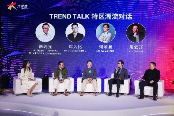 此次沙龍?zhí)匮奈粊碜詴r尚藝術(shù)、潮流生活、建筑設(shè)計(jì)領(lǐng)域的嘉賓,開啟了一場TREND TALK特區(qū)潮流對話。TIFC潮流國際時尚咨詢創(chuàng)始人、深圳市服裝行業(yè)協(xié)會學(xué)術(shù)委員會秘書長徐瑞光,SIXTY-SIX滑板品牌創(chuàng)始人鄧入比,AGC Design Ltd董事何敏泉,ECE上?偨(jīng)理周云開,共同聚焦深圳城市精神、年輕力、空間創(chuàng)意、時尚前景等關(guān)鍵詞,碰撞潮流靈感,共探城市美好生活想象。