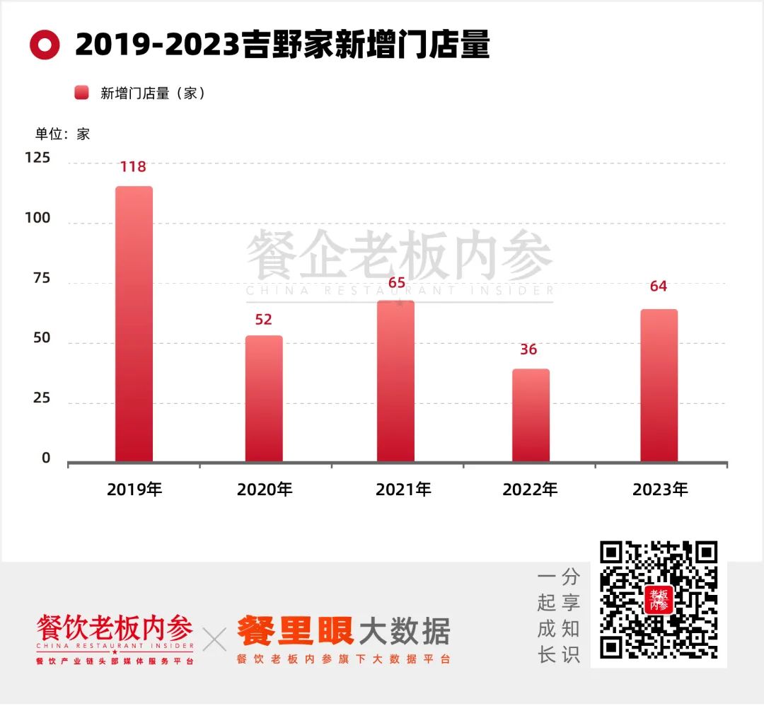 據(jù)第三方公開數(shù)據(jù)顯示,吉野家從2020年開始,新開出的門店數(shù)量就呈現(xiàn)出下滑趨勢(shì)。