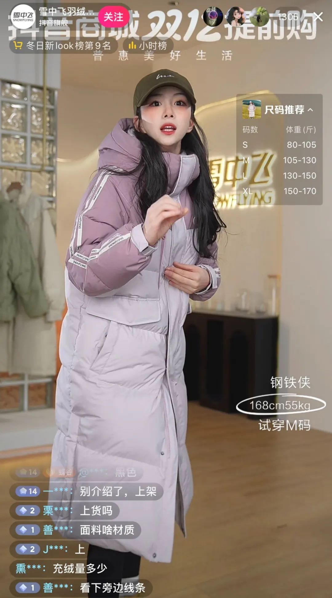 在雪中飛羽絨服的抖音直播間里,上千名觀眾一邊催促著商品上架,一邊提問(wèn)著商品相關(guān)的各種問(wèn)題!俺浣q量多少?面料什么材質(zhì)?蓬松度怎么樣?”主播一邊展示著身上的衣服,一邊細(xì)致地回答著各種問(wèn)題。