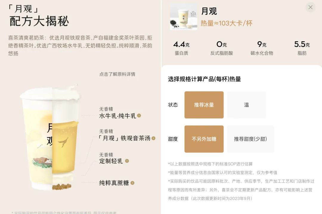 9月,喜茶重磅推出了首款“新茶飲專用奶”:3.8源牧甄奶,使用100%生牛乳,乳蛋白含量高達(dá)3.8g/100mL。