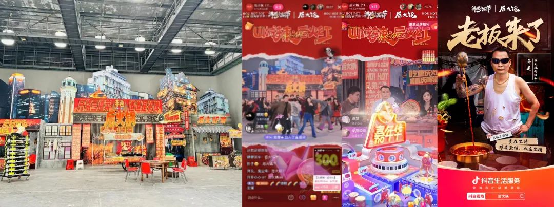在此次“沸騰火鍋節(jié)”活動(dòng)期間,后火鍋將80年代的重慶風(fēng)貌搬到品牌直播間,打造1大主場(chǎng)景和4大分場(chǎng)景,深度還原正宗山城煙火生活,為直播間用戶帶來了沉浸式的消費(fèi)體驗(yàn)。