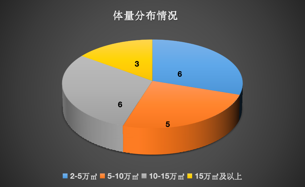 從商業(yè)規(guī)模的分布情況上看,規(guī)模在2至5萬㎡(含2萬㎡,不含5萬㎡)有6個(gè)商業(yè)項(xiàng)目,占比30%;5至10萬㎡(含5萬㎡,不含10萬㎡)有5個(gè)商業(yè)項(xiàng)目,占比25%;10至15萬㎡(含10萬㎡,不含15萬㎡)有6個(gè)商業(yè)項(xiàng)目,占比30%;15萬㎡及以上有3個(gè)項(xiàng)目,占比15%。