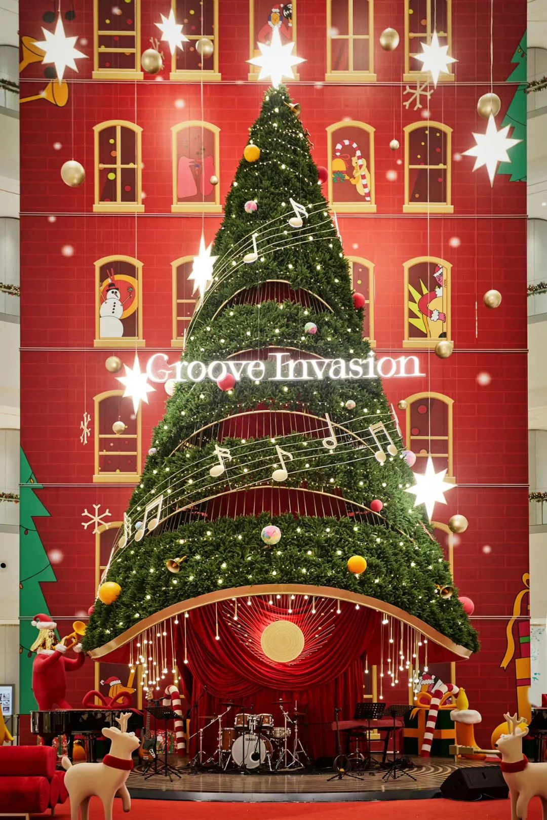 與上海恒隆廣場一樣的還有長沙IFS。今年長沙IFS攜手愛馬仕全球合作藝術(shù)家Mike Perry,以經(jīng)典的圣誕符號及爵士樂元素為靈感,打造15米高的巨型圣誕樹藝術(shù)裝置。舞臺上的巨型臺燈、抱著吉他的音樂人和放大版的禮物盒,都在敘述一個充滿想象的冬日故事。