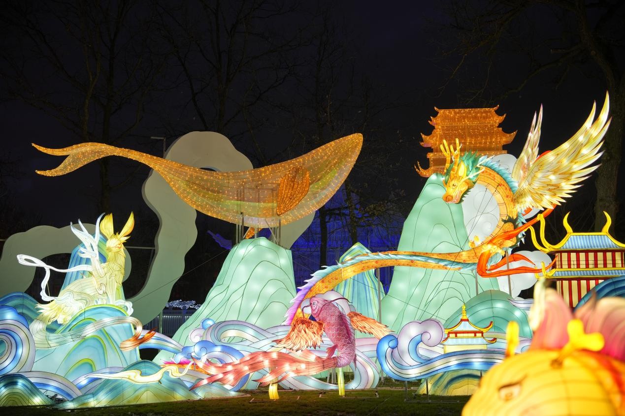 法國豫園燈會已經(jīng)正式對公眾開放。它的主題為“山海有靈”,以成書于2000多年前的中國古代百科全書《山海經(jīng)》為母本,將精神健碩的龍馬、扶搖萬里的鯤鵬、呼風(fēng)喚雨的應(yīng)龍、氣質(zhì)優(yōu)雅的白鹿等各種山海瑞獸融入60架燈組和2000余盞彩燈中,展示具有東方靈性的迎新祈福方式。