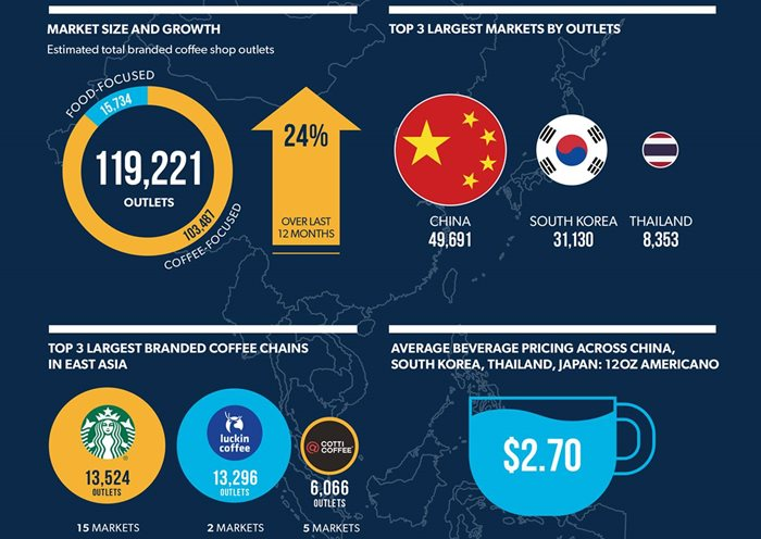 根據(jù)報(bào)告,過(guò)去12個(gè)月中,中國(guó)品牌咖啡門店的數(shù)量增長(zhǎng)了58%,達(dá)到創(chuàng)紀(jì)錄的49,691家,超美國(guó)9000多家,而同期美國(guó)品牌咖啡門店的數(shù)量?jī)H增長(zhǎng)了4%。[1]