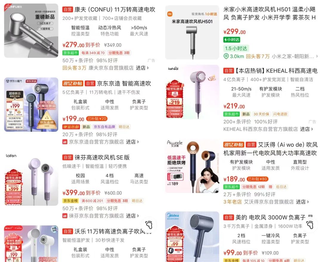 看到戴森高速吹風機如此火爆,一眾國產(chǎn)品牌迅速跟風“復刻”。