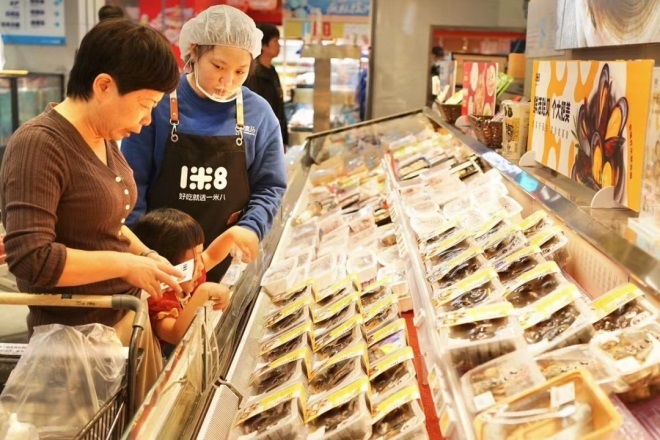 2015年盒馬成立,2016年就引進(jìn)加拿大波龍,把高端海鮮賣出“白菜價(jià)”。在國(guó)內(nèi)商超中率先引進(jìn)挪威三文魚,打開超市可生食市場(chǎng);盒馬改裝梭子蟹專用的“循環(huán)水車”南貨北調(diào),讓內(nèi)陸城市居民也能吃上開海的第一口梭子蟹。2022年,盒馬與合作伙伴聯(lián)合打造了全國(guó)第一個(gè)“海上盒馬村”,其產(chǎn)出的北緯39度生蠔通過三倍體技術(shù)增加了肥美程度,逐漸形成中國(guó)人自己的生蠔品牌。