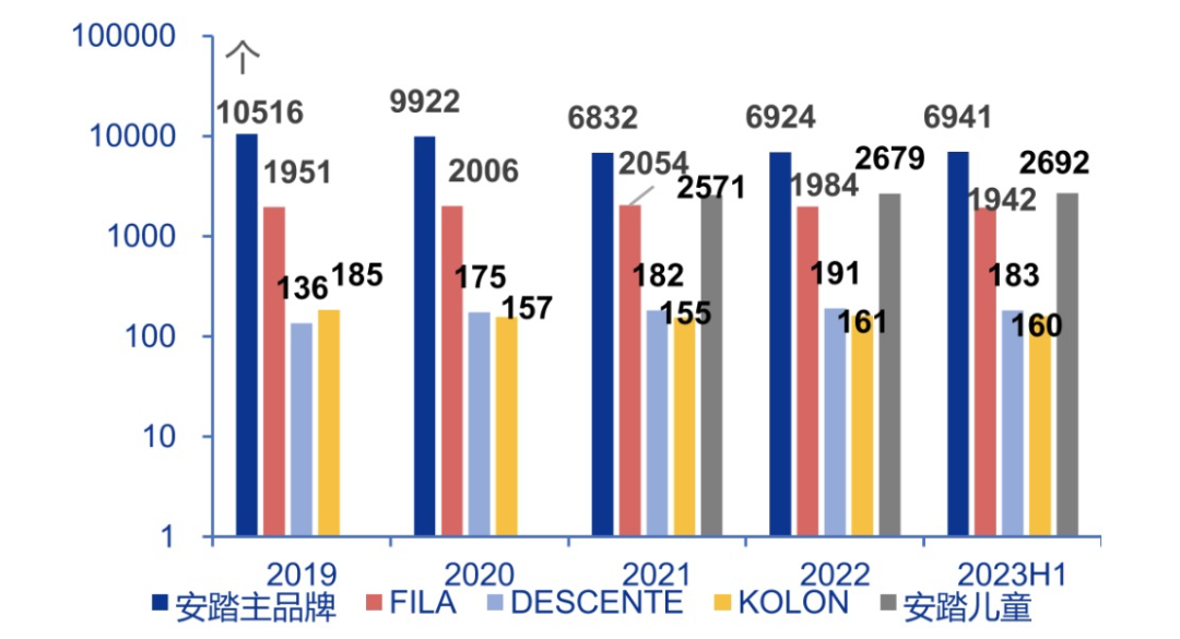 比如熱衷于收購的安踏。其早在2009年收購了時尚運(yùn)動品牌FILA;2015年收購了英國運(yùn)動時尚鞋品牌Sprandi;2016年開始代理迪桑特在中國大陸的產(chǎn)品設(shè)計、營銷及銷售;2017年收購韓國高端戶外品牌KOLON;2019年收購的Amer旗下匯聚了始祖鳥、Salomon、Wilson、Atomic等一眾專業(yè)性極強(qiáng)的體育品牌。并且,這些品牌的門店增速相對平穩(wěn)。