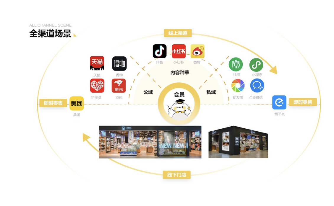 目前,九木雜物社已入駐各大線上平臺,天貓、京東、抖音、得物、微信小程序官方商城