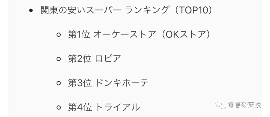 2023年,OK力壓另外三家折扣店,LOPIA(第二名)、唐吉訶德(第三名)、TRIAL(第四名),被評為關東地區(qū)最便宜超市第一名。