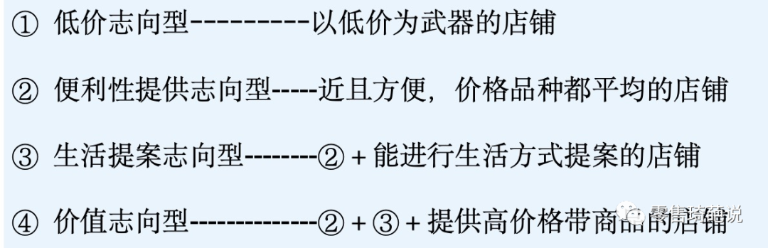 (52周MD創(chuàng)始人鈴木哲男老師,將日本超市劃分為4個類型。)
