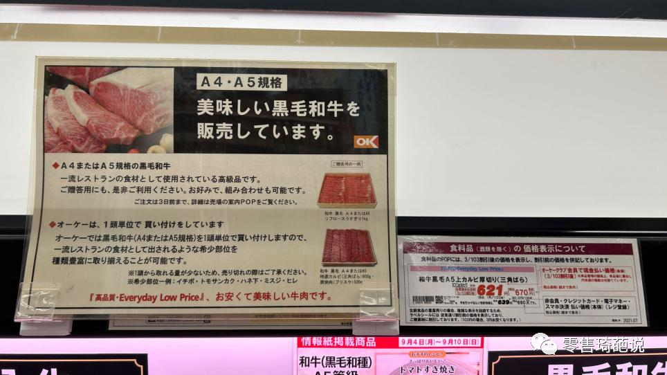 蔬果部門有京蔬菜(日本知名的蔬菜產(chǎn)地,以高品質(zhì)著稱)、有機蔬菜賣場;畜產(chǎn)(肉禽)部門有高端黑毛和牛。