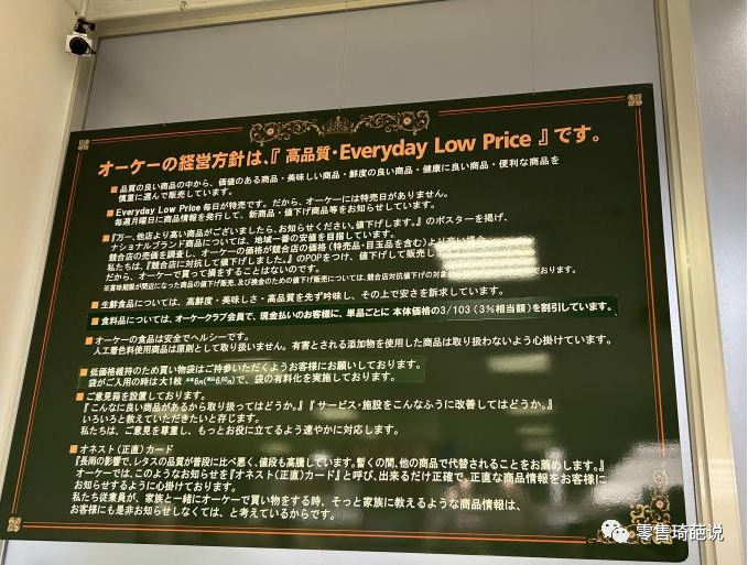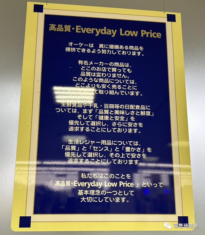 不管進入到任何一家OK超市,都會被入口處的四張大海報所吸引。OK的經(jīng)營方針是,「高品質(zhì)·EDLP(每天低價)」